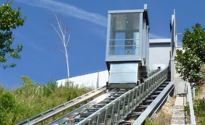 The inclined Lift or elevator works like a cable railway. The elevator consists of one or two inclined tracks. It moves independently up and down the slope. These are mostly installed outside of homes, and they can withstand conditions such as strong winds, snow, heat, sun, salt, and sea.